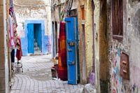 Smalle kleurrijke straat in de medina van Essaouira in Marokko