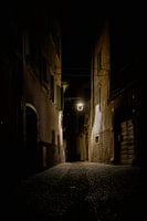 Romantische historische oude stad Malcesine aan het Gardameer in Italië met smalle straatjes op late uren zonder inwoners en toeristen. Het was mijn eerste keer in deze plaats en ik was meteen gefascineerd door de geschiedenis die deze plek uitstraalt. Omdat de smalle straatjes overdag overvol zijn met toeristen, is het een betere keuze om de nacht te kiezen om de sfeer vast te leggen. De paden zijn goed verlicht en leiden je door het historische centrum van de stad, in de voetsporen van vroegere toeristen zoals Goethe enkele eeuwen voor mij.