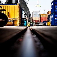 Gemaakt op de werf van Smit Rotterdam. Camera op de rails van de kraan.