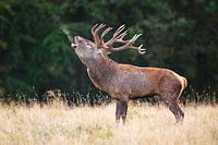 Edelhert ademt een mooi wolkje uit tijdens het burlen.