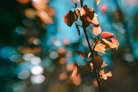 Jonge blaadjes waar de lentezon op schijnt. De kleuren zijn bewerkt zodat er een kleurrijk beeld ontstaat