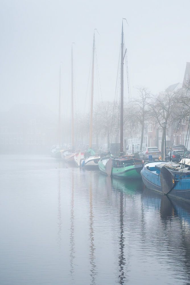 Wanneer de mist dik boven het water hangt, transformeren de historische grachten in een verstild, schilderachtig tafereel waarbij de grens tussen de kade en het water nagenoeg vervaagt