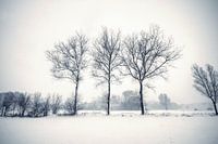 Een landschap bedekt door een dik pak sneeuw.