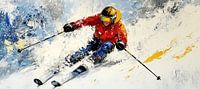 Details: schilderij skiën, skiën kunstenaar, sport schilderij, skieën, sneeuw, blauw, rood, wit, moderne kunst, beweging