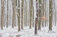 Vorige winter hebben we geen sneeuw gehad en deze winter ook niet. Maar eindelijk was er dan sneeuw voorspeld. Helaas zou het de volgende ochtend al weer gaan dooien. Dus vroeg opgestaan en snel naar een aantal favoriete plekken in het bos gegaan om te fotograferen. Dit beukenbos bij Hoog Soeren op de Veluwe is één van mijn favoriete plekken.