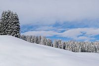 Nog onaangetast sneeuw landschap met besneeuwde dennenbomen in een wintersportgebied in Italië, de Seiseralm.