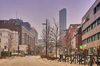 Sneeuw op de Vestdijk in Eindhoven. In 2021 viel er een dik pak sneeuw in Nederland, wat mooie plaatjes opleverde.