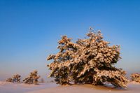 Sneeuwwinterlandschap in het stuifduingebied Hulshorsterzand in het natuurgebied de Veluwe in Gelderland, Nederland tijdens een koude winterdag.