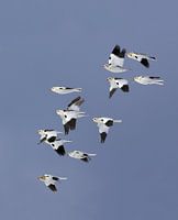 Groep Sneeuwgorzen (Plectrophenax nivalis) in vlucht