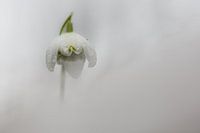 Een bloeiend sneeuwklokje omgeven door een zachte waas.