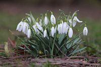 Mooie opname van sneeuwklokjes in het vroege voorjaar in maart op een wazige achtergrond.