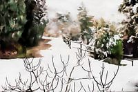 Een digitaal vervaardigd schilderij met een sneeuwtafereel en nog steeds sneeuw in Umbrië in Midden-Italië. Sneeuwval als deze is tegenwoordig zeldzaam, maar in voorgaande jaren is de sneeuw behoorlijk hard gevallen. In het verleden hebben we meerdere weken ingesneeuwd gezeten. Maar de laatste jaren, met de opwarming van de aarde, is de sneeuwval bij ons zeldzaam en vrij licht en blijft zelden lang op de grond liggen.