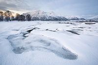 Een uitgestrekt sneeuw en winter landschap op de Vesteralen, de eilanden ten Noorden van de Lofoten in Noorwegen.