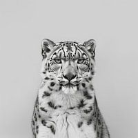 Dit indrukwekkende zwart-wit beeld van een sneeuwluipaard vangt de majestueuze en mysterieuze uitstraling van dit zeldzame dier. De gedetailleerde weergave van zijn dichte vacht en scherpe ogen geeft het beeld een betoverende diepte en elegantie. Ideaal voor dierenliefhebbers en kunstverzamelaars die een vleugje wildheid en schoonheid willen toevoegen aan hun kamer.