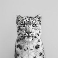 Dit indrukwekkende zwart-wit beeld van een sneeuwluipaard vangt de majestueuze en mysterieuze uitstraling van dit zeldzame dier. De gedetailleerde weergave van zijn dichte vacht en scherpe ogen geeft het beeld een betoverende diepte en elegantie. Ideaal voor dierenliefhebbers en kunstverzamelaars die een vleugje wildheid en schoonheid willen toevoegen aan hun kamer.