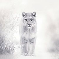 De Sneeuwpanter, een zeldzame verschijning in het winterlandschap, toont haar kracht en sereniteit in deze betoverende reeks beelden vol majestueuze elegantie.