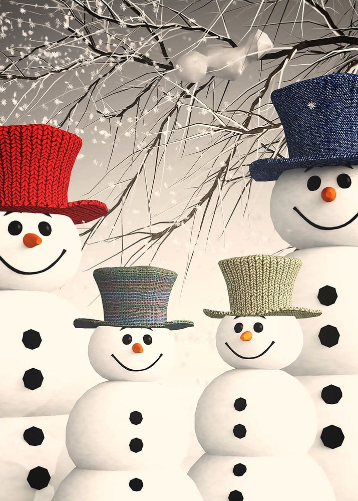 Kerstmis is de tijd van het jaar om samen te komen met je familie. Dat heeft deze familie sneeuwpop ook gedacht. Alle vier de sneeuwmannen zijn netjes gekleed en lachen breeduit naar de camera.