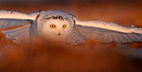 Vliegend vrouwtje Sneeuwuil (Bubo scandiaca) in Ottawa, Canada.