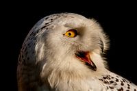 Sneeuwuil tegen een zwarte achtergrond.