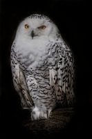 Sneeuwuil tegen een zwarte achtergrond.