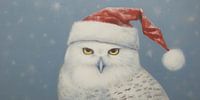 Een sneeuwuil met een kerstmuts op. De pastelkleuren en het lage contrast zorgen voor een serene uitstraling. Breng de gezelligheid van kerst in huis met dit charmante werk!