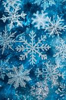 Een magisch winterwonderland ontvouwt zich in delicate, glinsterende sneeuwvlokken die zachtjes zweven op een diepblauwe achtergrond. Door hun delicate structuren en sprankelende effect lijkt de kamer op vers gevallen sneeuw. Deze afbeelding is perfect voor de woonkamer om een warme, uitnodigende sfeer te creëren.