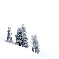 Een verstild beeld van winter in Zwitserland. De mist van die dag in combinatie met de onaangetaste witte sneeuw straalt een enorme rust uit. De minimalistische compositie en het gebrek aan kleur voegen nog net even wat extra's toe aan het beeld.