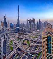 Snelwegkruising Dubai met op de achtergrond Burj Khalifa