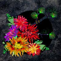 Bloemarrangement gemaakt van snippers verpakkingskarton in digitale compositie.