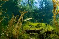 Het is lente en het onderwaterleven bloeit volop in de put van Ekeren. Een jonge snoek is op jacht tussen de waterplanten en het zonnetje geeft het decor een zomers tintje.