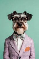In een net pak en met een modieuze vlinderdas toont deze snor een vleugje elegantie. De grote bril geeft hem een intellectuele uitstraling, terwijl zijn opvallende, snorachtige gezicht de perfecte combinatie van charme en karakter uitstraalt. Een echte stijlbewuste viervoeter!