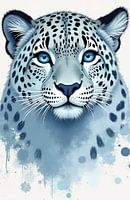 Een portret van een Schnnleopard met typische blauwe ogen. De afbeelding is gegenereerd met AI
