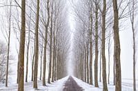 Een fietspad tussen de bomenrijen in de winter. Groningen. Nederland