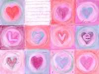 So Much Love is een acryl schilderij in landschap formaat geschilderd door de kunstenares Karen Kaspar. De afbeelding is geschilderd in pasteltinten roze, rood en lichtblauw in verschillende tinten. Het beeldoppervlak is verdeeld in twaalf vierkanten, die beschilderd zijn met cirkels en hartvormen. Het woord Liefde is verschillende…