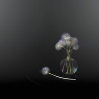 Minimalistisch stilleven met uitgebloeide paardebloemen in B&W .