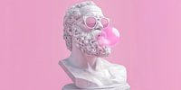 Het werk roept een gevoel van wijsheid en contemplatie op. De roze tinten geven een moderne en toegankelijke draai aan de klassieke filosofie.