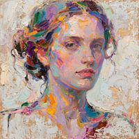 Sofia - Portretschilderij in eigentijdse kleuren - Toon je moed met eigentijdse kleuren met dit moderne en abstracte kunstwerk dat doet denken aan de grote werken van de oude meesters. Kies zelf het formaat en het materiaal uit de vele opties. Verander je huis in een toevluchtsoord van kunst, precies zoals jij het wilt!