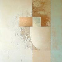 Soft Geometry Serenity - Dit abstracte schilderij toont een samenstelling van geometrische vormen in een rustig kleurenpalet met texturen die diepte creëren.