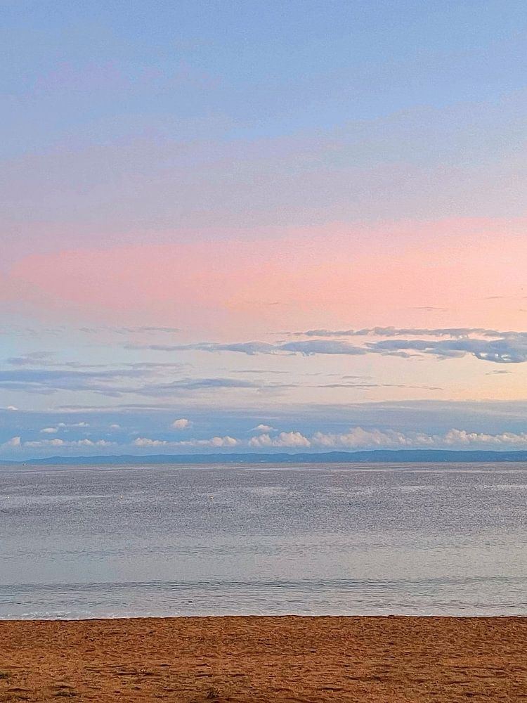 The calm water, gentle sky and open space create a feeling of stillness and balance—inviting the viewer to slow down and breathe.