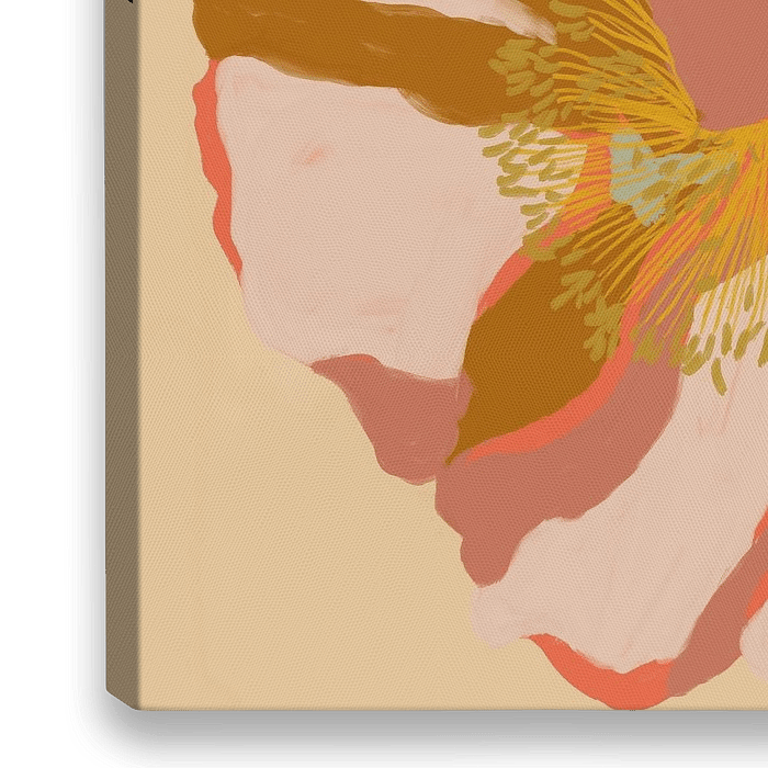 Breng de lente in huis met dit schilderij van twee grote, sierlijke klaprozen. De bloemen staan centraal en trekken direct de aandacht. Warme tinten roze, oudroze, okergeel en roestbruin geven het werk een zachte, levendige uitstraling. De saliegroene stamper en dieproze accenten zorgen voor een levendige touch.