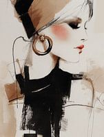 Met haar gesloten ogen en rustige uitstraling belichaamt ze het moderne vrouwelijke zelfvertrouwen – kalm, gelaagd en moeiteloos stijlvol. De combinatie van warme nude-tinten, diep zwart en penseelstreken vol textuur geeft het werk een luxueuze, bijna haute couture uitstraling. Dit portret brengt rust én karakter in één beeld: perfect voor wie houdt van tijdloze elegantie met een artistiek randje. Een eyecatcher die zowel in een minimalistisch interieur als in een stijlvolle boutique of werkruimte volledig tot haar recht komt.