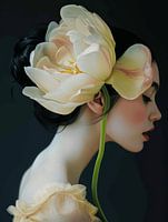 Soft and tender, modern portret met een grote tulp. Een bijzondere blikvanger voor je interieur! Kies zelf het formaat en materiaal.