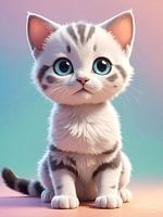 Een lief kinderliedje populair geworden door de serie "The Big Bang Theory" past erg goed bij dit schattige poesje met witte haartjes en grijze strepen en mooie blauwe ogen.
