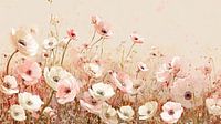 Zachtroze Anemonen in een bloemenveld. De lichtroze bloemen geven een zachte en vrolijke sfeer, een perfecte aanvulling voor je interieur met roze accenten.
