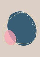Mooie poster in roze en blauw met een gouden touch. Organische vormen.