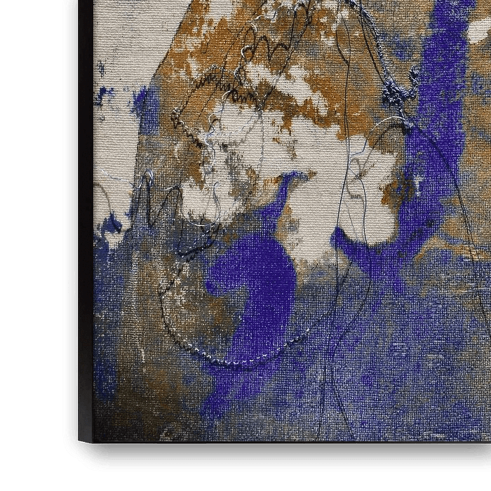 De zwarte draad speelt de hoofdrol in mijn werken, geïnspireerd op de momenten van het leven, ik hoop de toeschouwer een moment of gevoel van herkenning te geven, een innerlijke beleving, iets waardoor je gaat dwalen in je eigen gedachten. Mijn losse draden staan voor groei & verandering. Deze bewegen mee met warmte & wind & zijn naar eigen gevoel te leggen op het doek. Ik hou van puur, materie & textuur.