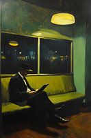 In de stijl van Edward Hopper brengt het schilderij een gevoel van stille reflectie en innerlijke rust over. Het nodigt de kijker uit om na te denken over de gedachten van de man en zich te verliezen in de tijdloze rust van het moment. Het schilderij vertelt over de schoonheid van eenzaamheid en de vlucht in de wereld van boeken terwijl je door ruimte en tijd reist.