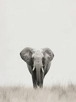 "Solitaire Soevereiniteit" onthult de indrukwekkende eenzaamheid van een olifant in de uitgestrekte savanne, geportretteerd in een monochrome tint. Met grote, opengesperde oren en rustige blik staat deze reus centraal in een zee van wuivend gras, een toonbeeld van natuurlijke grandeur en overlevingskracht. De subtiele overgang van de…