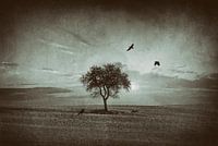 Kunstzinnige solituide boom met kraaien in Fine Art uitvoering.