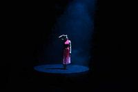 Een dansvoorstelling inspireerde me tot het maken van dit beeld. Een danseres staat alleen in een lichtkegel op het podium.